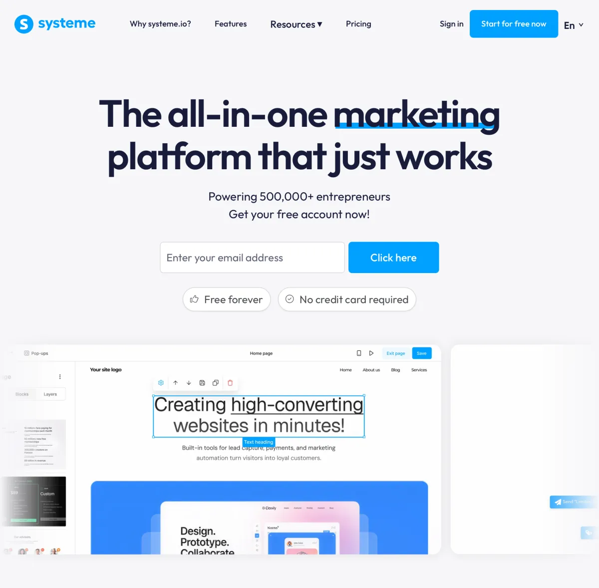 When I first started using automations and funnels, I did it with Systeme. Their free plan includes 2,000 contacts, unlimited email marketing, A/B testing, course builder, and website hosting. It replaces Calendly, Wix, ClickFunnels, and other platforms you'd normally pay for separately.